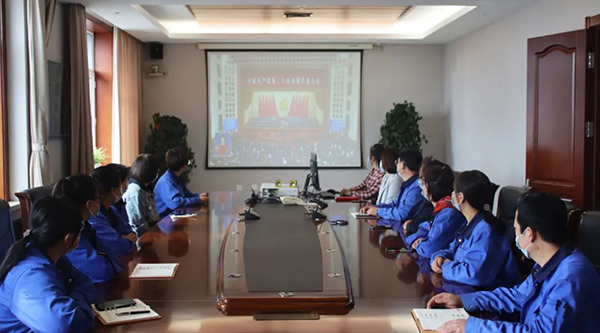 珍寶島藥業(yè)董事長(zhǎng)方同華、黨委書記申哲洙、公司高層管理人員及來自哈爾濱、虎林、雞西各地區(qū)分公司的一百余名黨員通過線上+線下形式,集體收看了開幕會(huì)現(xiàn)場(chǎng)直播盛況,認(rèn)真聆聽報(bào)告內(nèi)容。