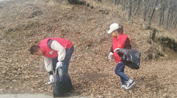 大家自備手套、水靴、剪刀、袋子、皮繩等清掃工具,從石青山的山腳下開(kāi)始,對(duì)環(huán)山路兩側(cè)的垃圾進(jìn)行全面清理、裝運(yùn)。有的鉆入樹(shù)林,撿拾白色垃圾;有的摘除破損條幅,更換新貌;有的收堆、撐袋,將垃圾裝車運(yùn)走。醒目的條幅標(biāo)語(yǔ),飄揚(yáng)的志愿服務(wù)隊(duì)隊(duì)旗,鮮紅的志愿者身影,忙碌的勞動(dòng)場(chǎng)面,構(gòu)成了一幅五彩斑斕的畫(huà)卷。